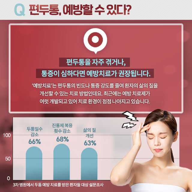두통약을 한 달에 10일 이상 복용하지 않도록 제한해야 한다.
