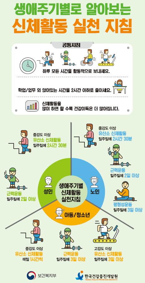 최근 몇 년 사이, 이와 관련된 흥미로운 연구들이 발표되었다. 미국의 질병통제예방센터(CDC)나 세계보건기구(WHO)는 성인에게 주당 최소 150분의 중강도 유산소 운동 또는 75분의 고강도 운동을 권장하고 있다. 이러한 권장량은 하루에 20~30분씩 나눠서 할 수도 있고, 일주일 중 하루나 이틀에 몰아서 할 수도 있다.