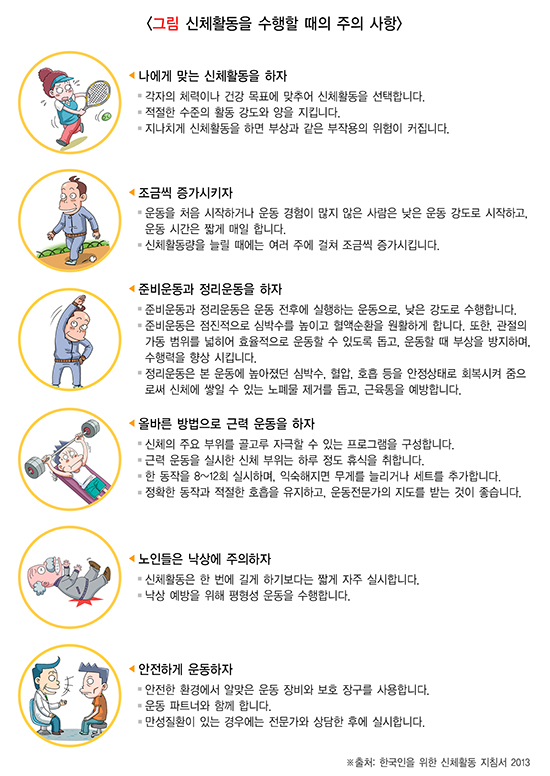 또한, 주말 몰아서 운동을 하는 경우에는 반드시 충분한 준비운동과 정리운동, 그리고 운동 강도의 점진적 증가가 중요하다는 점도 강조된다. 반대로 매일 운동을 하는 경우에는 루틴에 지루함이 생기지 않도록 운동 종류를 다양하게 바꾸는 것도 좋은 방법이다.