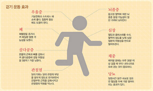 하루 30분, 빠르게 걷기 같은 중강도 운동을 생활화하자.