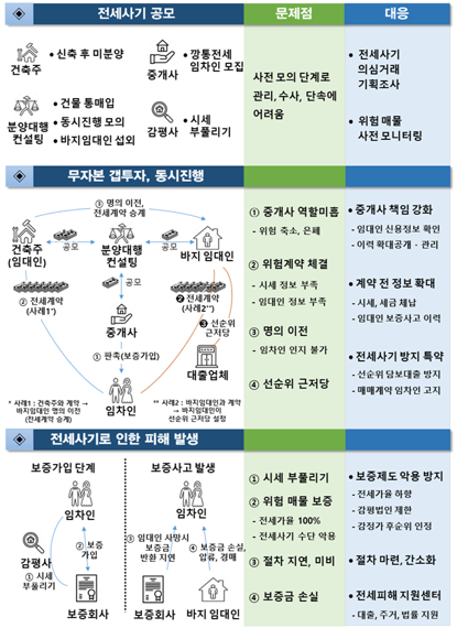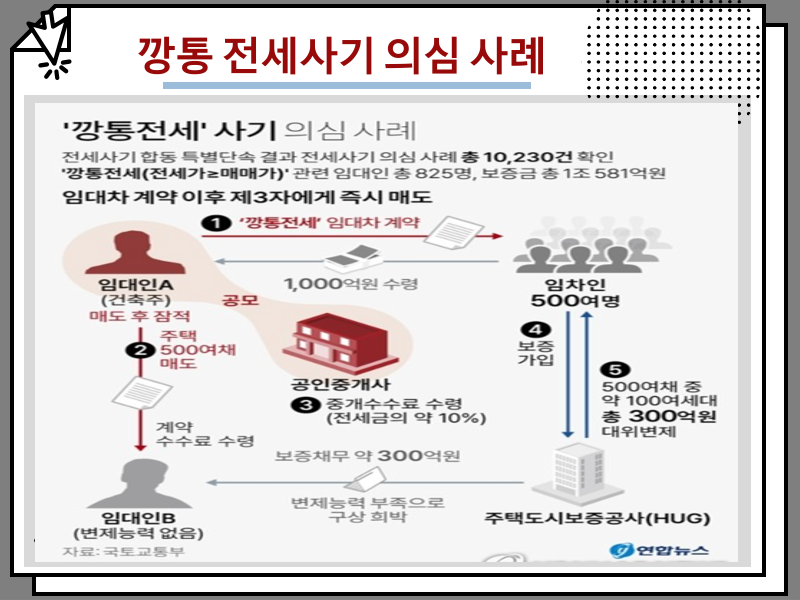 전세사기는 최근 몇 년 사이 급증한 사회문제로, 특히 저금리 시기와 부동산 가격 급등기의 틈을 타 무자본 갭투자가 성행하면서 피해 규모도 기하급수적으로 늘어났다. 정부는 임대사업자 등록제와 전세금 반환보증 제도를 강화하는 등의 대책을 내놓고 있지만, 여전히 제도의 허점을 노린 사기 행각은 이어지고 있다.
