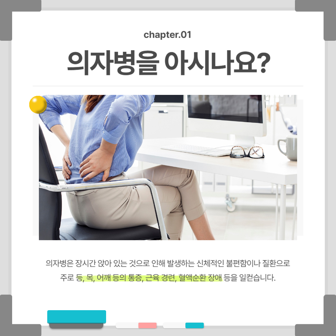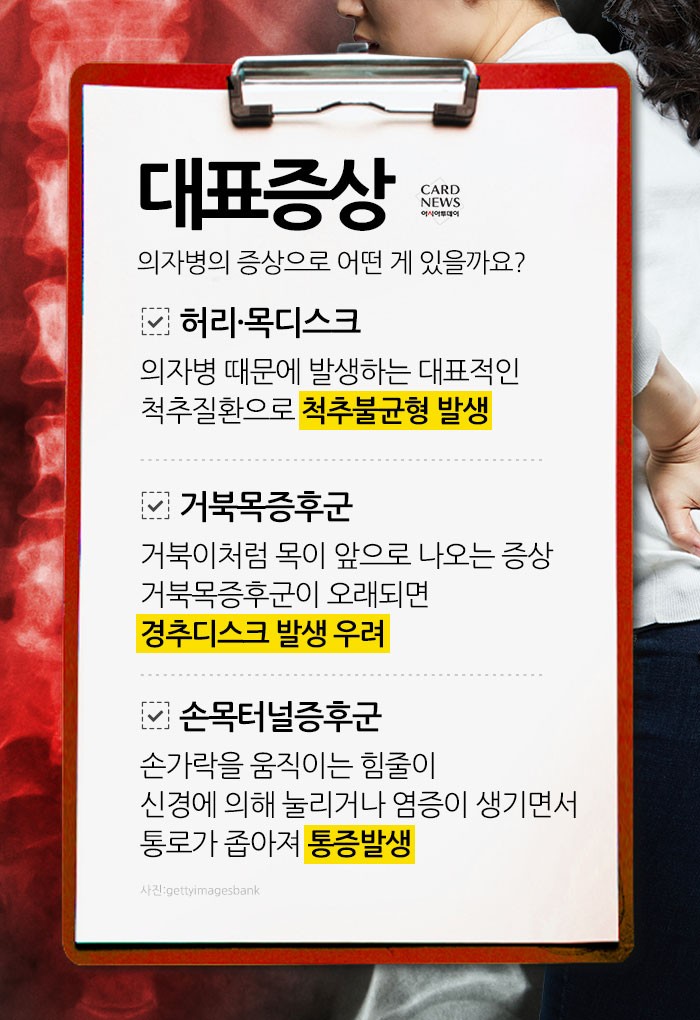 더 나아가 ‘의자병’은 단순한 통증을 넘어 만성 질환으로 연결될 수 있다. 대표적인 질병은 다음과 같다: