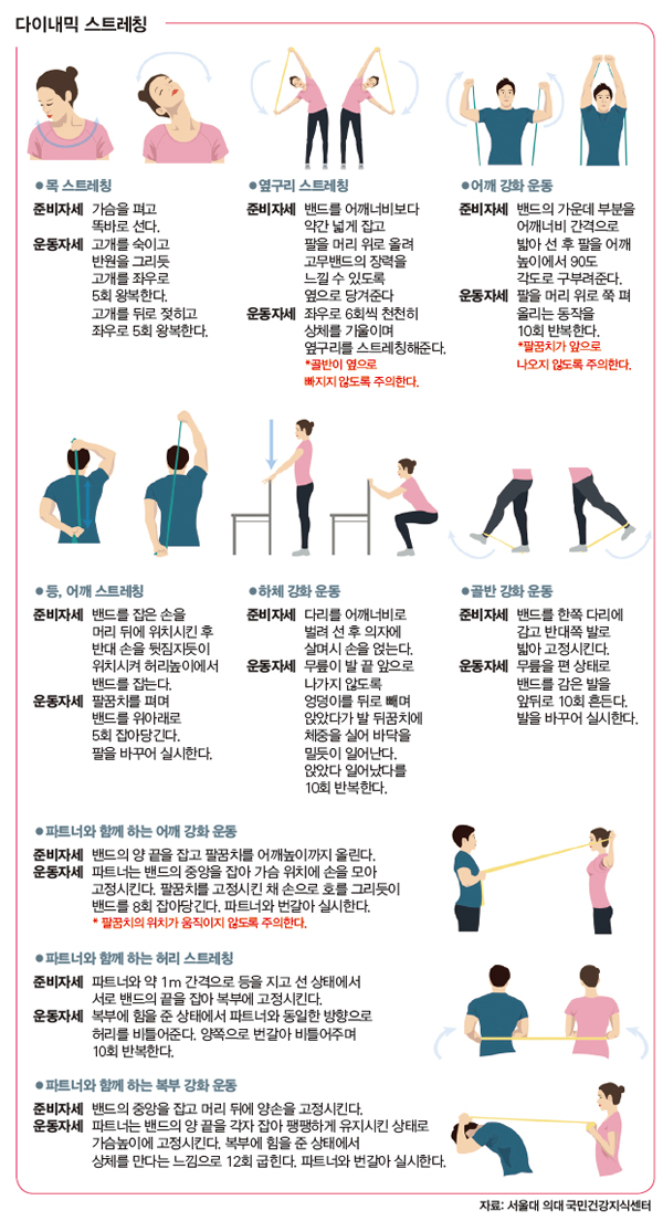 일상적인 스트레칭, 요가, 필라테스는 척추 건강에 매우 효과적이며, 체형을 바로잡아 통증 예방에 도움이 된다.