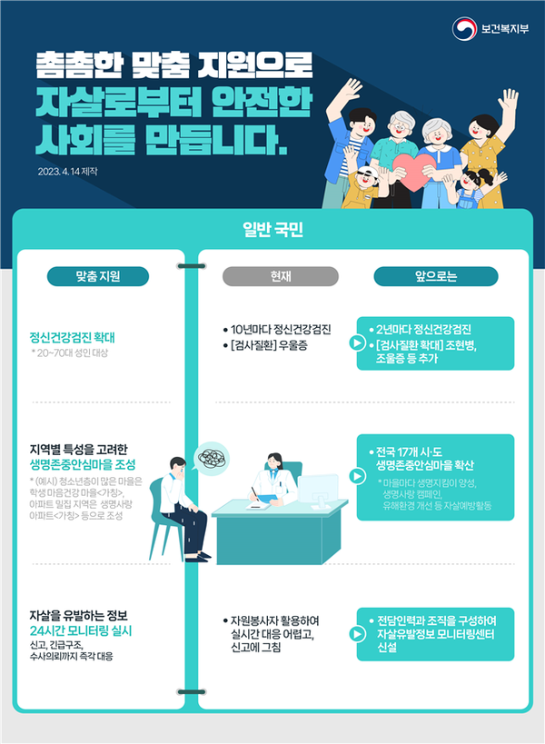 정부는 자살 유발 정보를 차단하고자 ‘자살예방법’을 개정하고, 방송통신심의위원회를 통해 유해 게시물에 대해 삭제 및 차단 명령을 내리고 있다. 또한 주요 포털사이트 및 SNS와 협력하여 자살 관련 키워드 검색 시 상담전화나 응급기관 정보를 먼저 제공하는 방식의 ‘안심 검색’ 기능도 도입되었다.