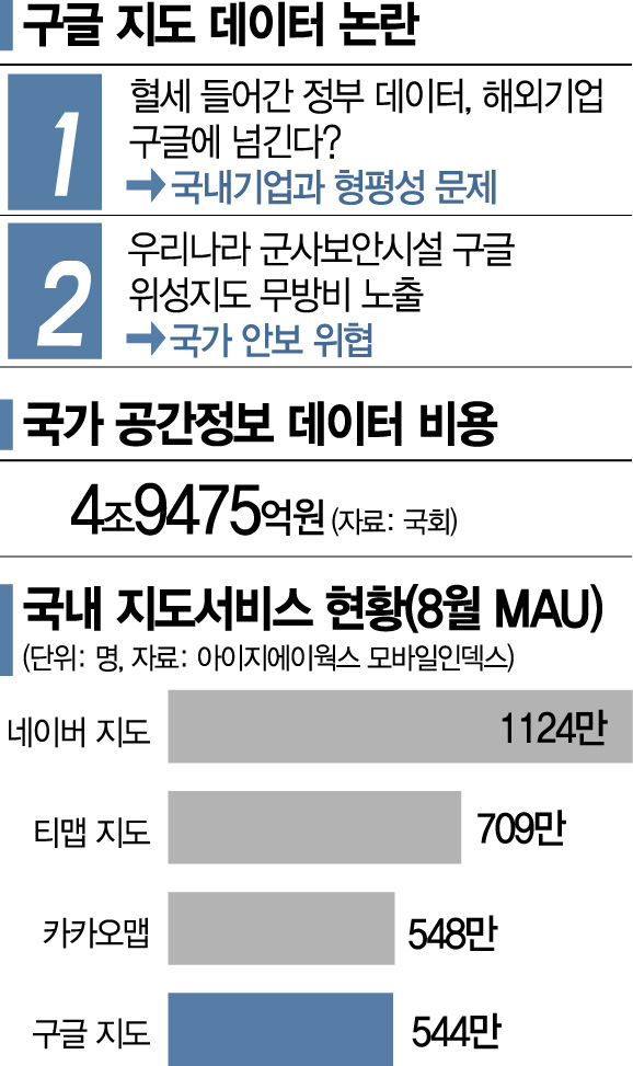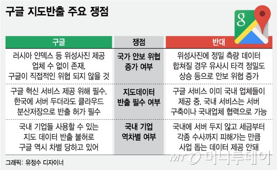 정부는 고정밀 지도 반출 제한의 이유로 국가 안보와 군사 기밀 보호를 내세우고 있다. 한국은 국토 전체에 군사시설이 밀집되어 있으며, 위성지도나 스트리트 뷰로도 군사시설이 노출되는 우려가 있다는 것이다. 또한 지도 데이터가 해외로 반출되면 해당 국가의 서버에 저장되어 사이버 공격의 위험에 노출될 수 있으며, 이는 국가 안보에 직결된다는 주장이다.