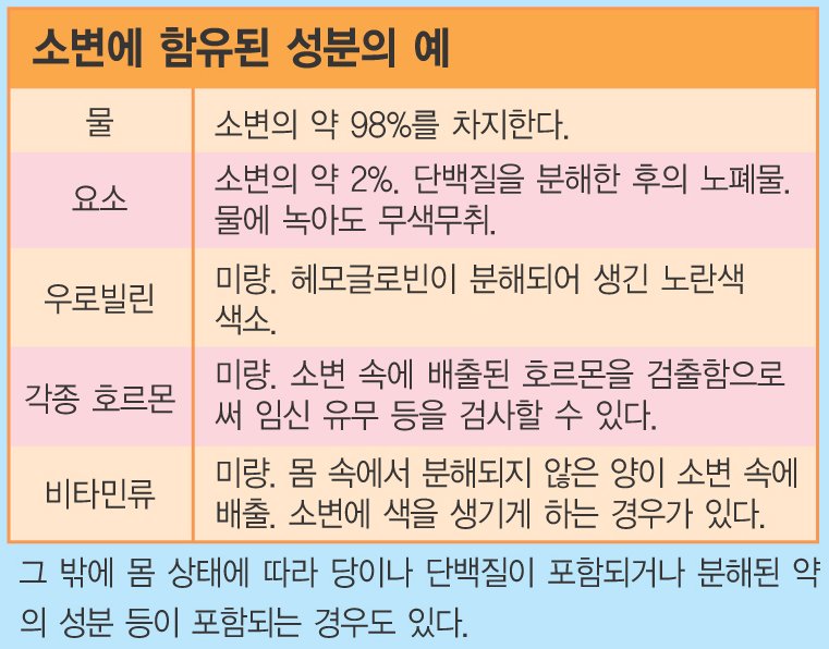 소변은 우리 몸의 노폐물을 배출하는 중요한 수단이다. 신장은 하루에 약 150리터의 혈액을 걸러내면서 노폐물과 수분을 걸러내고, 이 중 약 1.5리터가 소변으로 만들어진다. 이렇게 생성된 소변은 요관을 통해 방광으로 전달되며, 방광은 평균적으로 약 300~500mL의 소변을 저장할 수 있다. 방광이 어느 정도 차면 신경 신호를 통해 뇌로 전달되어 "소변이 마렵다"는 느낌을 받게 된다.