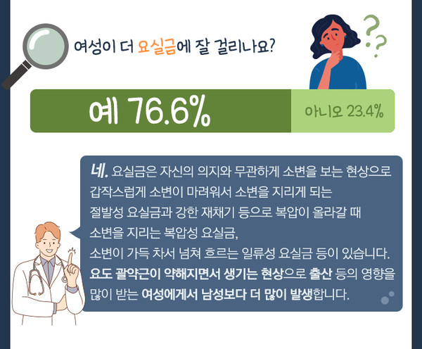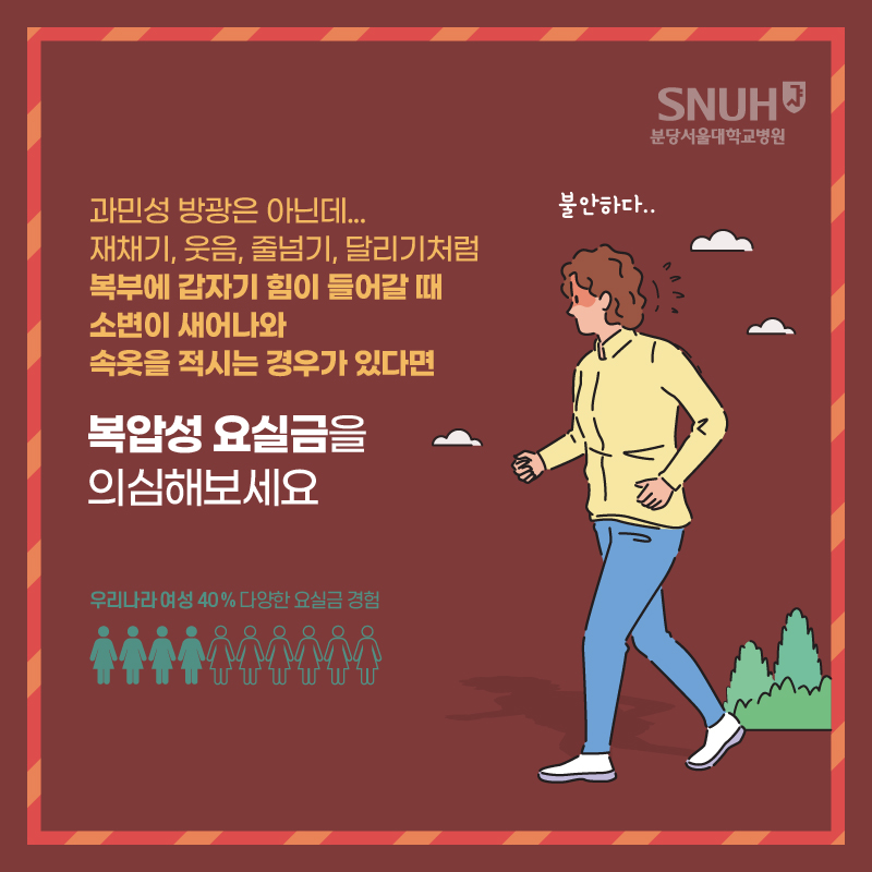 4. 요실금 위험 증가: 방광이 자주 과도하게 늘어나고, 참는 습관이 지속되면 배뇨 조절에 문제가 생기고 요실금으로 발전할 수 있다.