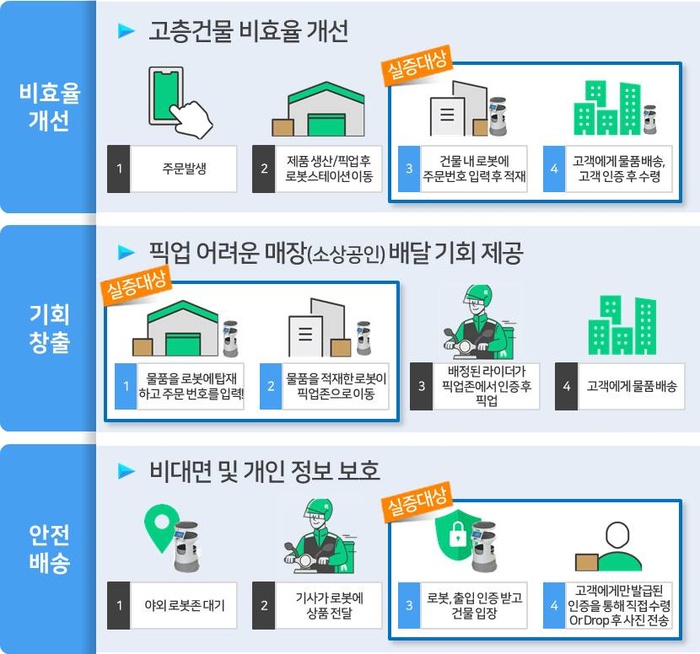 이 로봇은 사용자가 앱을 통해 주문을 하면 자동으로 가장 가까운 거점에서 출발해 지정된 주소까지 스스로 이동한다. 목적지에 도착하면 수신자에게 알림이 전송되며, 인증 코드를 입력하거나 얼굴 인식으로 본인 확인을 거친 후 물품을 수령할 수 있다. 모든 과정은 비대면으로 이뤄지며, 개인정보 보호와 안전성에 초점을 맞춰 설계됐다.