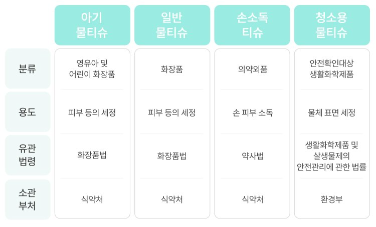 여성용 물티슈는 생리 기간이나 위생 관리를 위해 자주 사용되며, 특히 민감한 부위에 직접 닿는 제품인 만큼 그 성분은 더욱 주의가 필요하다. 아이들에게 사용하는 아기 물티슈 또한 발육이 덜 된 피부와 면역 체계에 쉽게 영향을 줄 수 있다. 일부 연구에서는 물티슈 성분이 아기들의 호흡기 질환 및 피부 알레르기 발병률을 높일 수 있다는 지적도 있다.