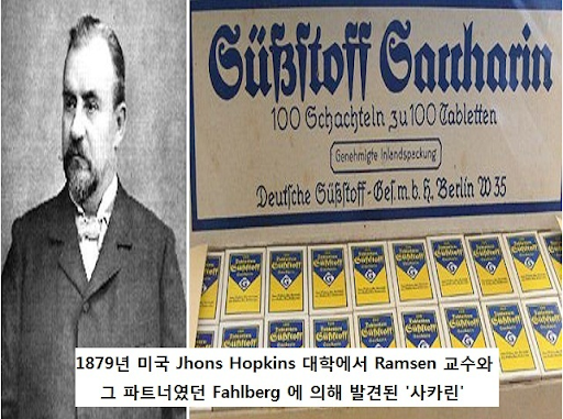 사카린(Saccharin)은 1879년 미국 존스홉킨스대학교의 화학자 콘스탄틴 팔베르그(Constantin Fahlberg)에 의해 처음 합성되었다. 당시 그는 석탄 타르에서 유도한 화합물 중 하나가 놀랍도록 단맛이 나는 것을 발견했고, 이를 '사카린'이라 명명했다. 사카린은 설탕보다 약 300배 이상 단맛을 지니고 있으며, 칼로리가 거의 없어 당뇨병 환자나 다이어트를 원하는 사람들에게 대체 감미료로 각광받아왔다.