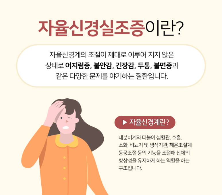 위와 같은 생활습관 개선으로도 증상이 나아지지 않거나, 두근거림, 어지럼증, 소화 장애 등이 심하게 동반된다면 병원 진료가 필요하다. 신경과나 내과, 정신건강의학과 등에서 자율신경계 기능을 검사하고, 필요에 따라 약물치료나 심리상담을 병행할 수 있다. 특히 우울감이나 불안이 동반될 경우에는 조기에 치료를 시작하는 것이 중요하다.