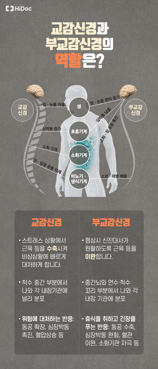 우리 몸에는 여러 신경 체계가 존재하지만, 그중에서도 자율신경계는 우리가 의식하지 않아도 자동으로 작동하는 생리 기능을 조절한다. 심장 박동, 호흡, 소화, 혈압, 체온 조절 등이 여기에 해당한다. 자율신경계는 크게 교감신경과 부교감신경으로 나뉜다.