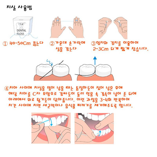 한국에서는 치실 사용이 아직 일반화되지 않았지만, 미국에서는 치실 사용이 구강 건강 관리의 필수 요소로 간주된다. ADA는 치실을 하루 1회 이상 사용할 것을 권장하며, 칫솔이 닿지 않는 잇몸 사이의 플라그 제거에 효과적이라고 설명한다. 또한 구강세정제는 항균 작용과 입 냄새 제거에 유용하다고 평가된다.