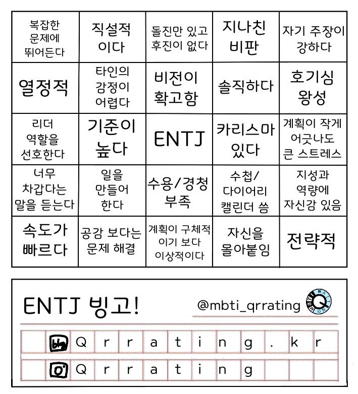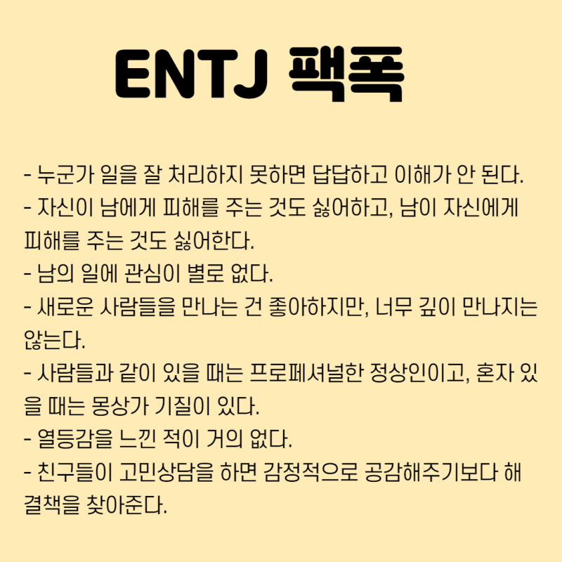 ENTJ의 대표적인 특징을 정리하면 다음과 같다: