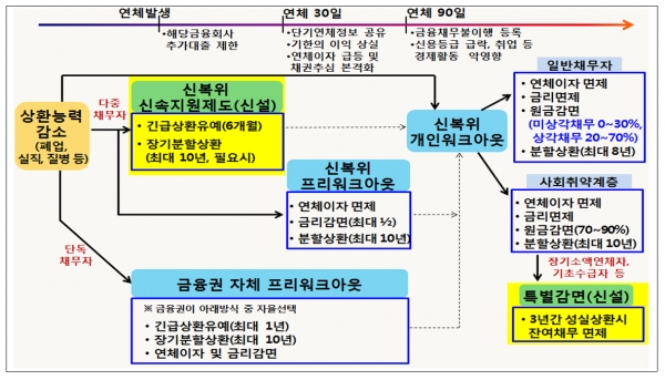 분할 상환 지원뿐 아니라, 신용회복위원회 등과 연계하여 채무 조정, 신용 점수 회복 프로그램도 병행 추진된다. 나아가 재창업 교육, 취업 지원 프로그램 등도 제공해 단순한 '빚 갚기'에 그치지 않고 경제적 자립까지 지원하는 통합 시스템이 마련된다.