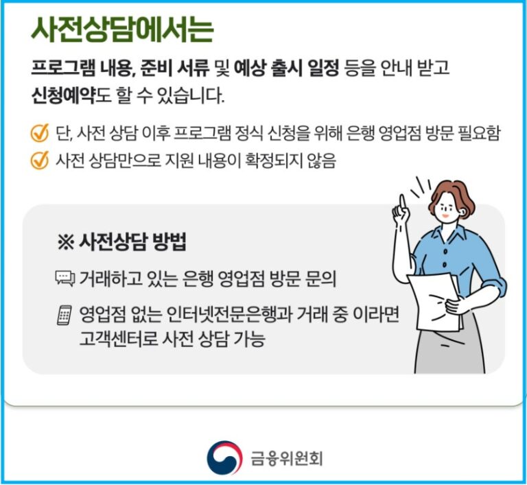 상담 및 심사는 주로 온라인 사전 예약제를 통해 진행되며, 서류 미비 시 추가 보완이 필요할 수 있다.