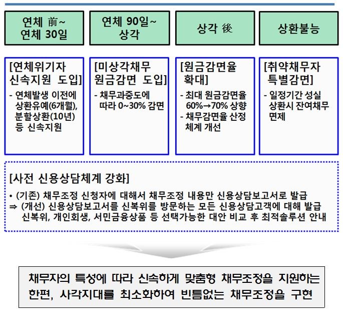 또한, 금융당국은 올해 안에 "채무자 맞춤형 재기 지원 시스템"을 구축하여 부채 상황, 소득 수준, 재기 가능성 등을 종합적으로 분석해 개인별로 최적화된 지원 방안을 제공할 계획이다.