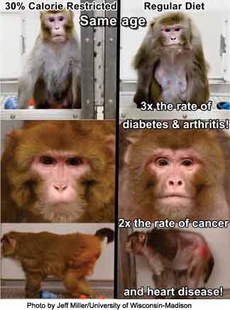 1930년대에 시작된 칼로리 제한(caloric restriction) 연구는 저속노화 연구의 시초라 할 수 있다. 위스콘신 대학 연구진은 장기간 칼로리를 30~40% 줄인 원숭이 그룹에서, 대조군에 비해 심장질환, 암, 당뇨병 등의 발생률이 눈에 띄게 낮아졌다는 결과를 발표했다. 또한 이들은 더 오랫동안 신체기능과 외모를 젊게 유지했다.