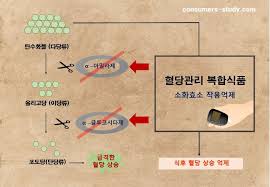 글루코스 흡수 저해: 장에서 포도당의 흡수를 억제해 식후 혈당의 급격한 상승을 막음.