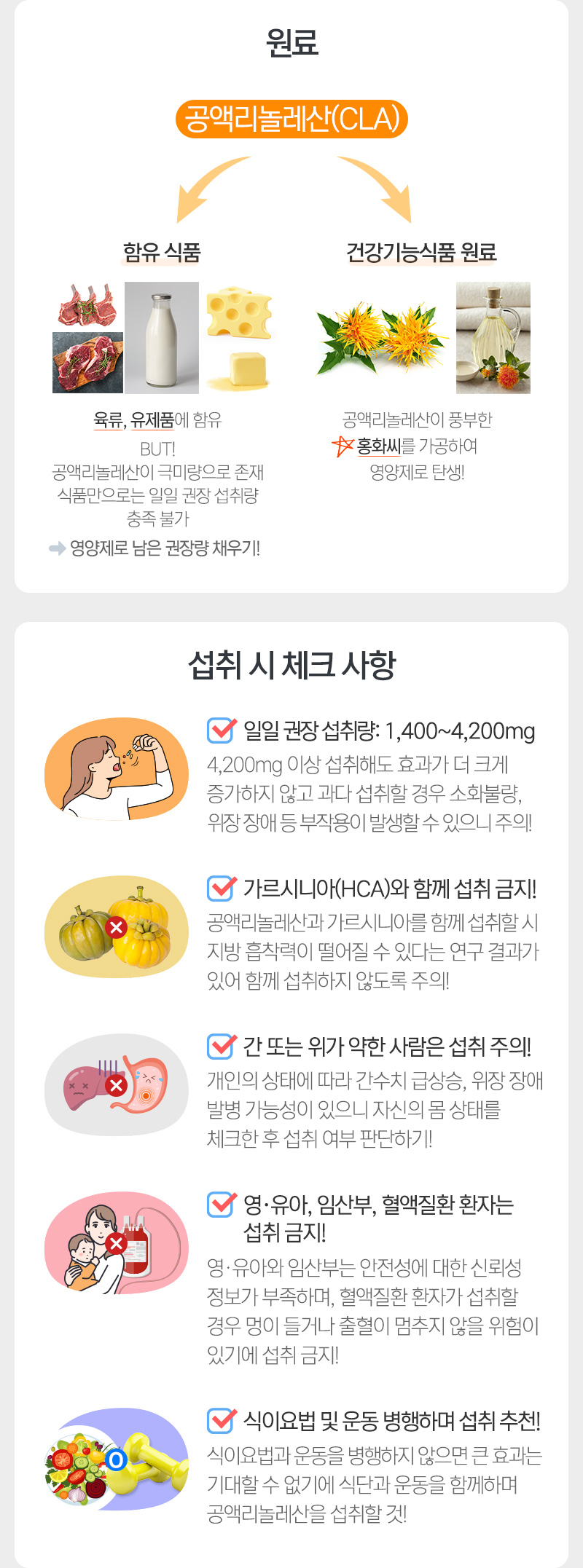 CLA는 주로 소나 양 같은 반추동물의 고기 및 유제품에 존재하는 지방산으로, 체지방 감소, 혈당 조절, 항암 효과 등 다양한 효능이 알려져 있다.