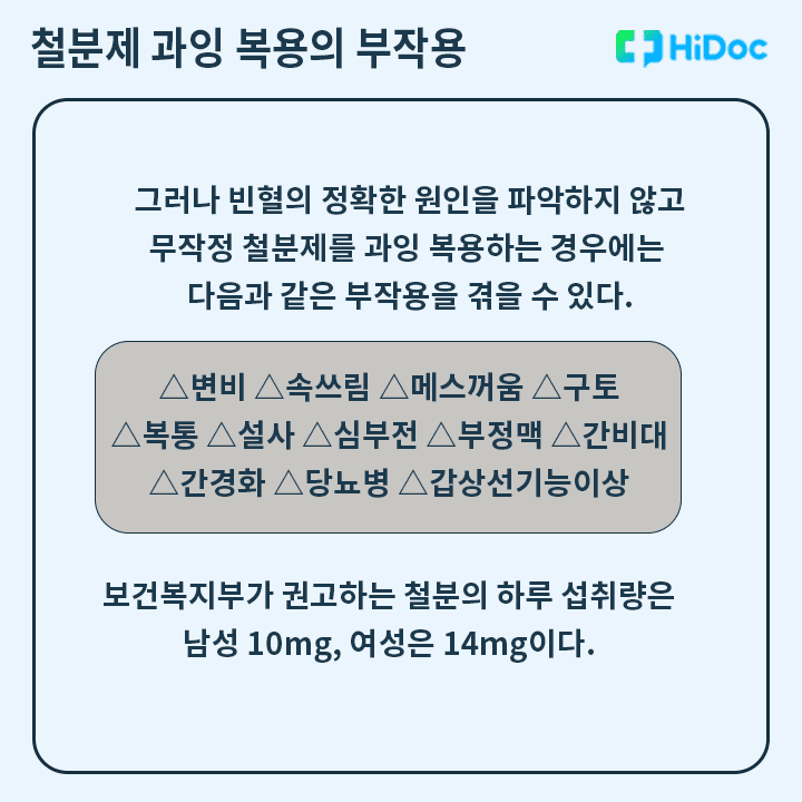 결론: 철분은 필요한 만큼만 섭취해야 하며, 염증이나 감염이 있는 상황에서는 혈액 검사 등을 통해 정확한 필요량을 확인한 뒤 섭취 여부를 결정하는 것이 안전하다.