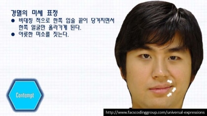 한쪽 입꼬리 표정 = 경멸의 미세표정일 가능성 있음