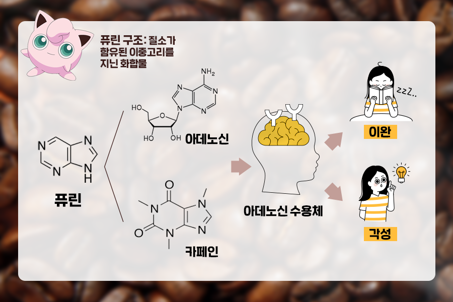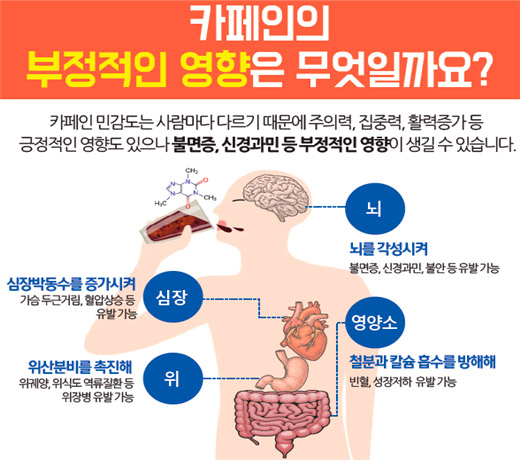 카페인은 세계에서 가장 널리 소비되는 중추신경 자극제이다. 커피 한 잔에는 평균 95mg, 홍차는 40~70mg, 에너지 드링크는 종류에 따라 최대 300mg에 이르는 카페인이 포함돼 있다. 카페인은 아데노신이라는 졸음을 유도하는 신경전달물질의 수용체를 차단해 뇌를 깨우는 역할을 한다.