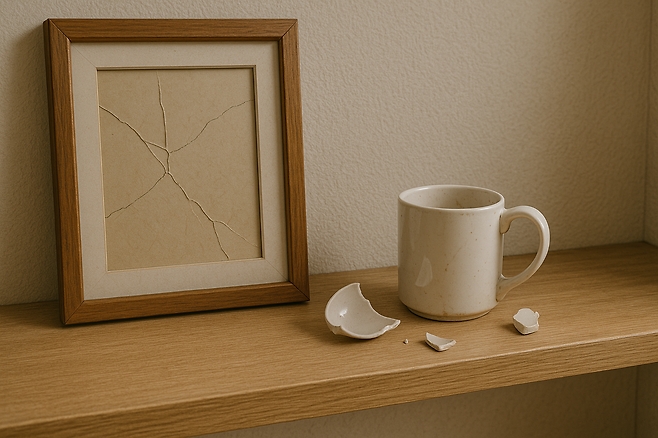 깨진 시계, 부러진 의자, 금 간 거울 등 손상된 물건들은 기능적으로 사용할 수 없을 뿐만 아니라, 에너지 심리학과 환경심리학의 관점에서 볼 때 부정적인 정서 자극으로 작용할 수 있습니다. 환경심리학자 Rachel Kaplan과 Stephen Kaplan은 인간이 주의를 회복하기 위해서는 ‘긍정적 단서(positive cues)’가 있는 환경이 필요하다고 했습니다. 손상된 물건은 사용자의 시야에 지속적으로 ‘고장’, ‘실패’, ‘결함’의 메시지를 주며, 무의식적으로 기분을 낮출 수 있습니다.