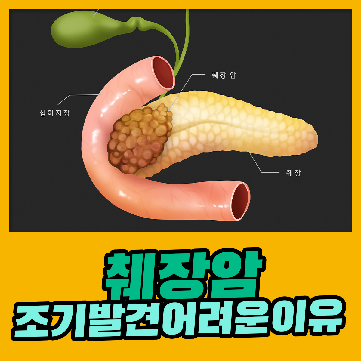 췌장이 복강 깊숙이 있어 진찰로 발견 어려움