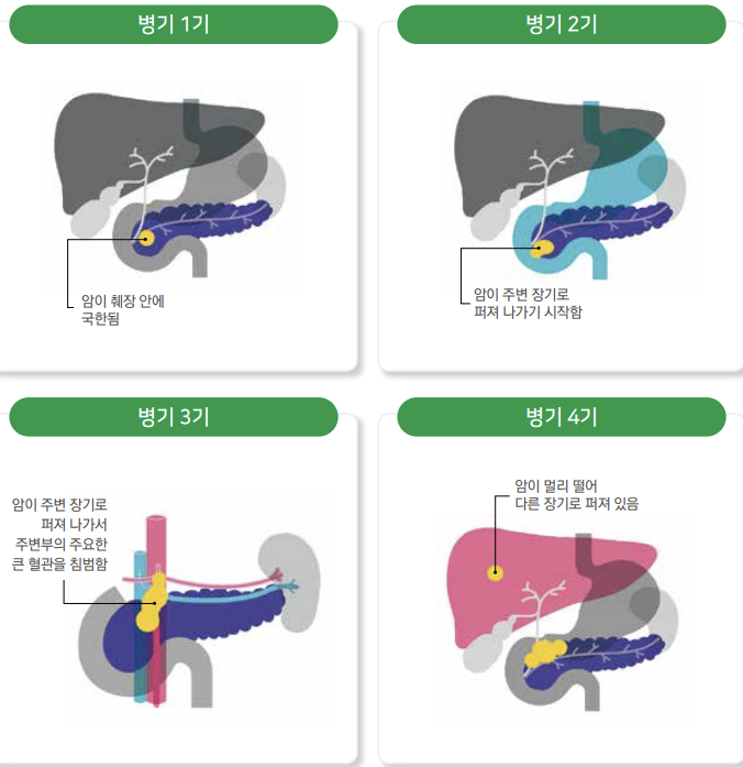 췌장암은 진단 시 4기인 경우가 50% 이상이며, 실제 환자의 평균 생존 기간은 진단 후 6개월 이내인 경우도 많습니다.