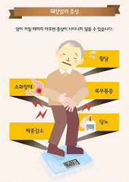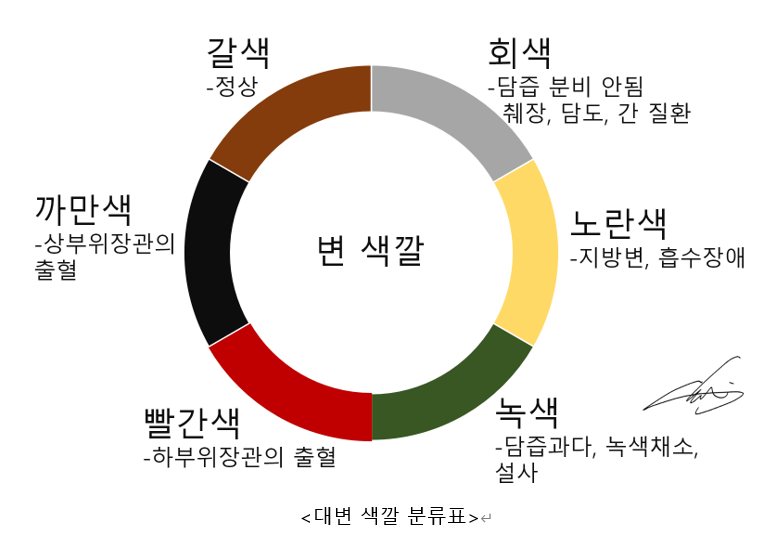 변색: 회색 또는 점토색 변, 짙은 갈색 소변 등이 동반될 수 있습니다.