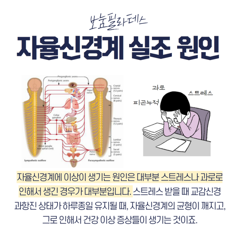 셋째, 자율신경계는 스트레스의 장기화로 인해 회복 능력을 잃고, 전신의 불균형과 만성 피로, 불면, 심혈관 이상 등의 결과를 초래한다.