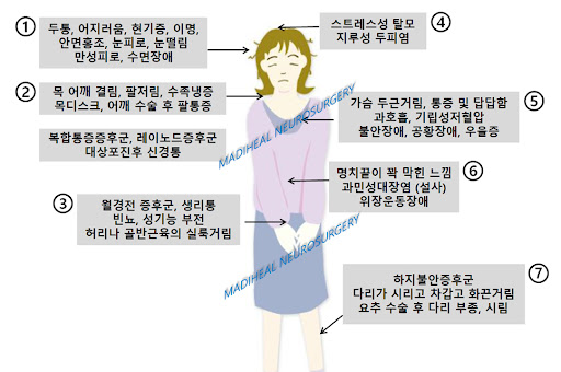 이 불균형은 다양한 생리적 이상을 유발한다. 대표적으로는 심박수 증가, 혈압 상승, 수면 장애, 근육 긴장, 소화불량, 과민성 방광 등이 있다. 자율신경계의 불균형은 ‘자가조절 능력의 상실’로 이어지며, 이는 질병 저항력을 현저히 저하시킨다. 더욱 심각한 경우에는 ‘자율신경 실조증(autonomic dysfunction)’이나 ‘신경성 실신’과 같은 증상이 동반될 수 있다.