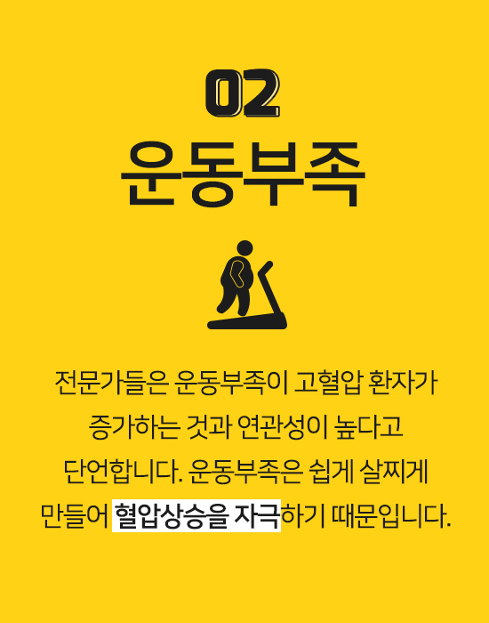 운동 부족: 규칙적인 운동은 혈압을 낮추는 데 도움이 되며, 혈관 기능을 개선시킨다.