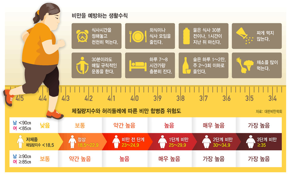 체중 관리: 체질량지수(BMI)를 정상 범위로 유지하면 고혈압 위험이 크게 줄어든다.