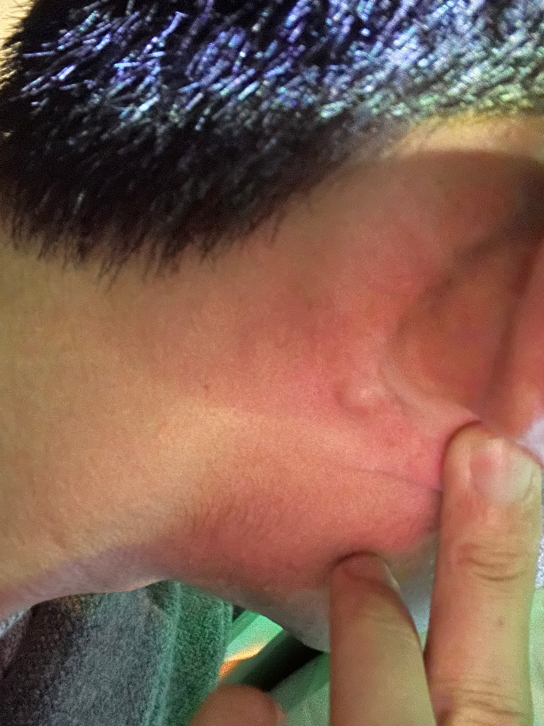 피부 감염은 보통 작은 상처나 모낭의 염증으로부터 시작된다. 귀 뒤 부위는 피부가 약하고 접히는 구조로 인해 땀이 고이거나 상처가 생기기 쉬우며, 외부 자극(예: 귀걸이, 마스크 끈, 땀띠 등)으로 인해 피부가 미세하게 손상될 수 있다. 이 작은 틈을 통해 세균이 피부 아래로 침투하면 **국소 농양(고름집)**이나 봉와직염(Cellulitis) 같은 감염으로 진행될 수 있다.