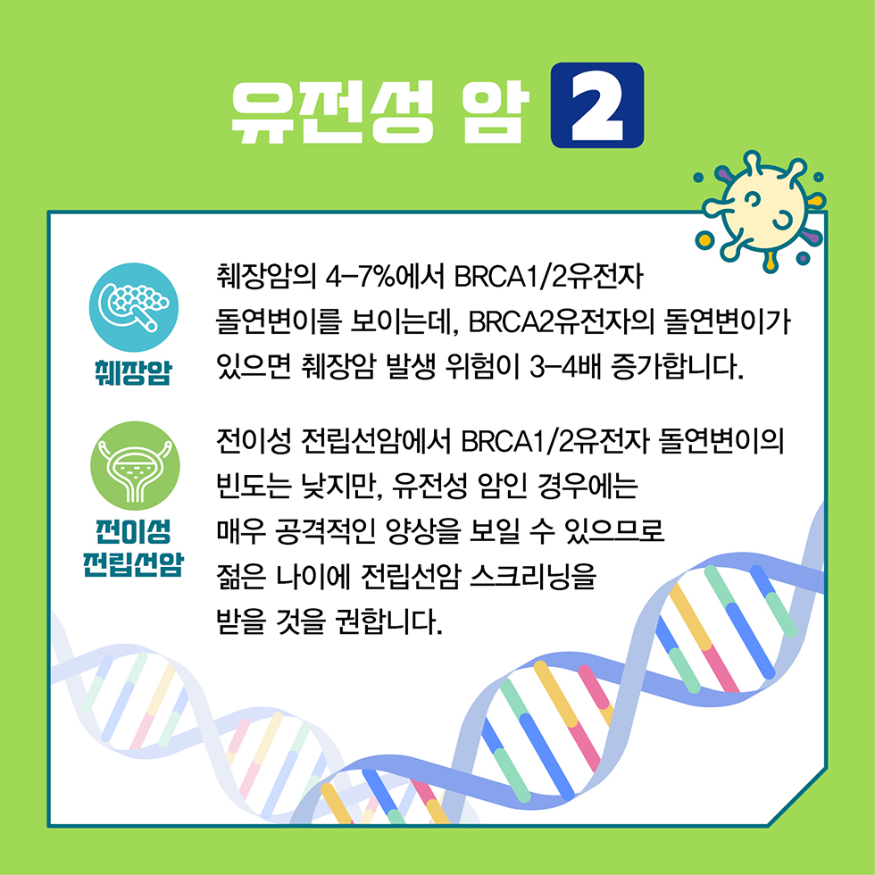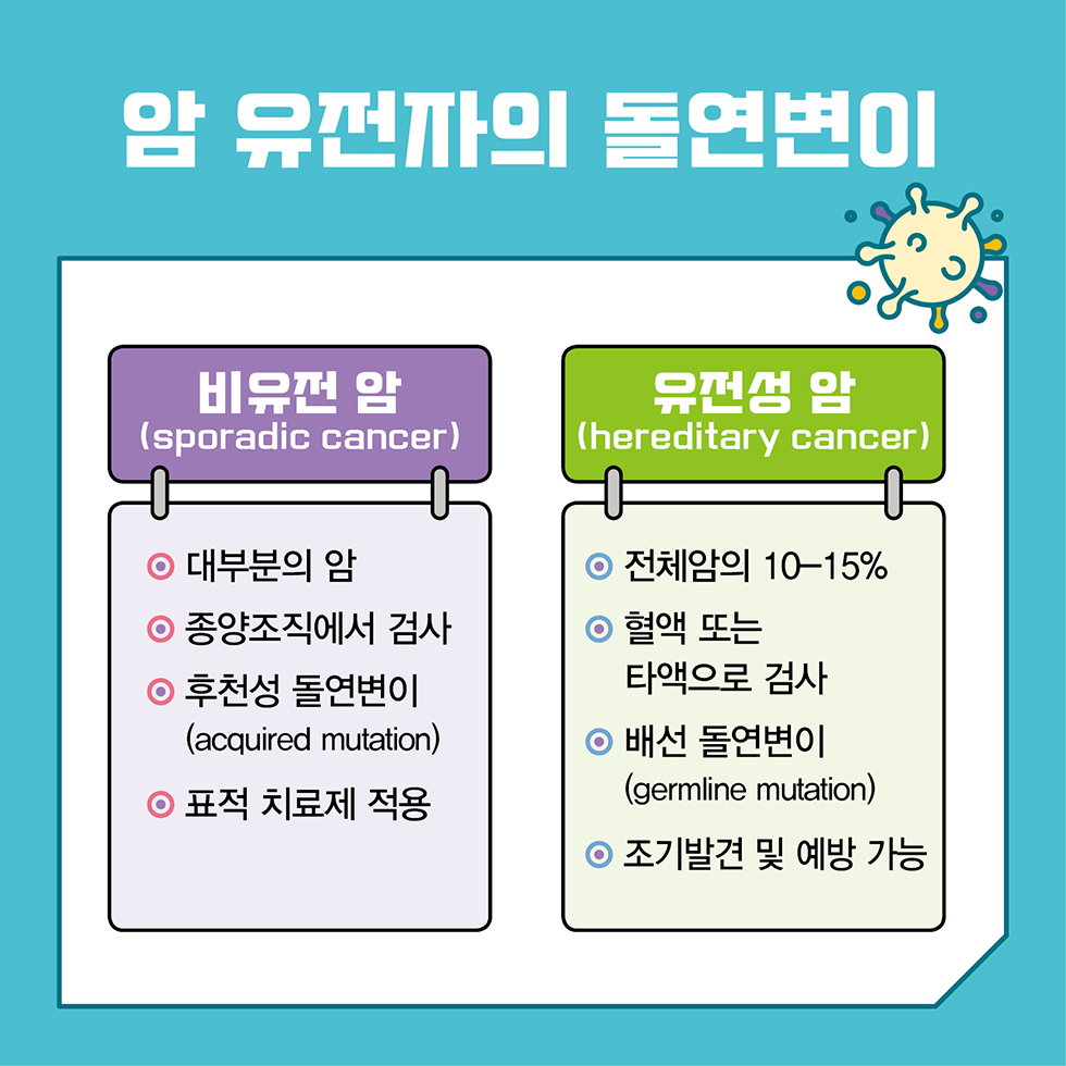 대부분의 암은 후천적 환경 요인—흡연, 방사선, 감염 등—에 의해 발생한다. 그러나 전체 암의 약 5~10%는 명확한 유전적 요인과 연관되어 있으며, 그중 상당수는 종양억제 유전자의 변이와 관련이 있다. BRCA1/2(유방암), MLH1/MSH2(대장암), TP53(다양한 암) 등이 대표적이다. 리-프라우메니 증후군은 TP53 유전자의 변이로 인해 발생하며, 유년기 육종, 유방암, 부신암, 뇌종양, 백혈병 등 다양한 종류의 암을 동시다발적으로 유발할 수 있다.