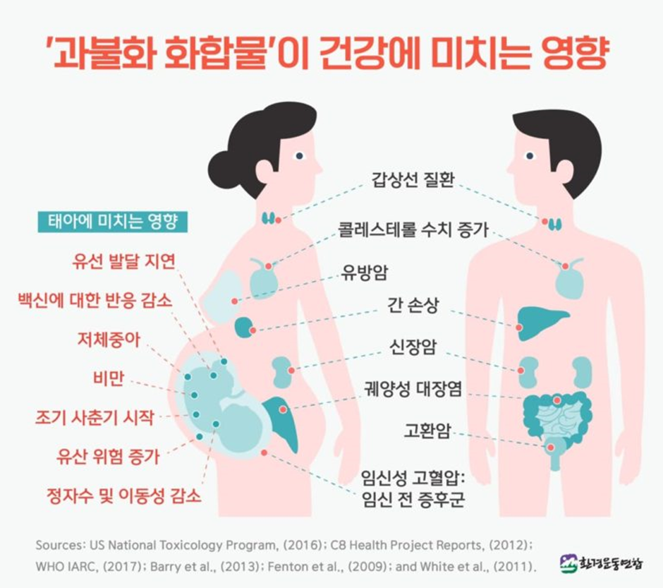 PFAS는 체내에 들어오면 다양한 방식으로 생리 기능을 교란한다. 대표적인 영향은 다음과 같다.