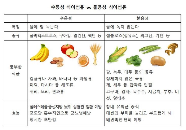 변비가 심한 경우 불용성 섬유보다 수용성 섬유 위주로 섭취하는 것이 바람직하다.