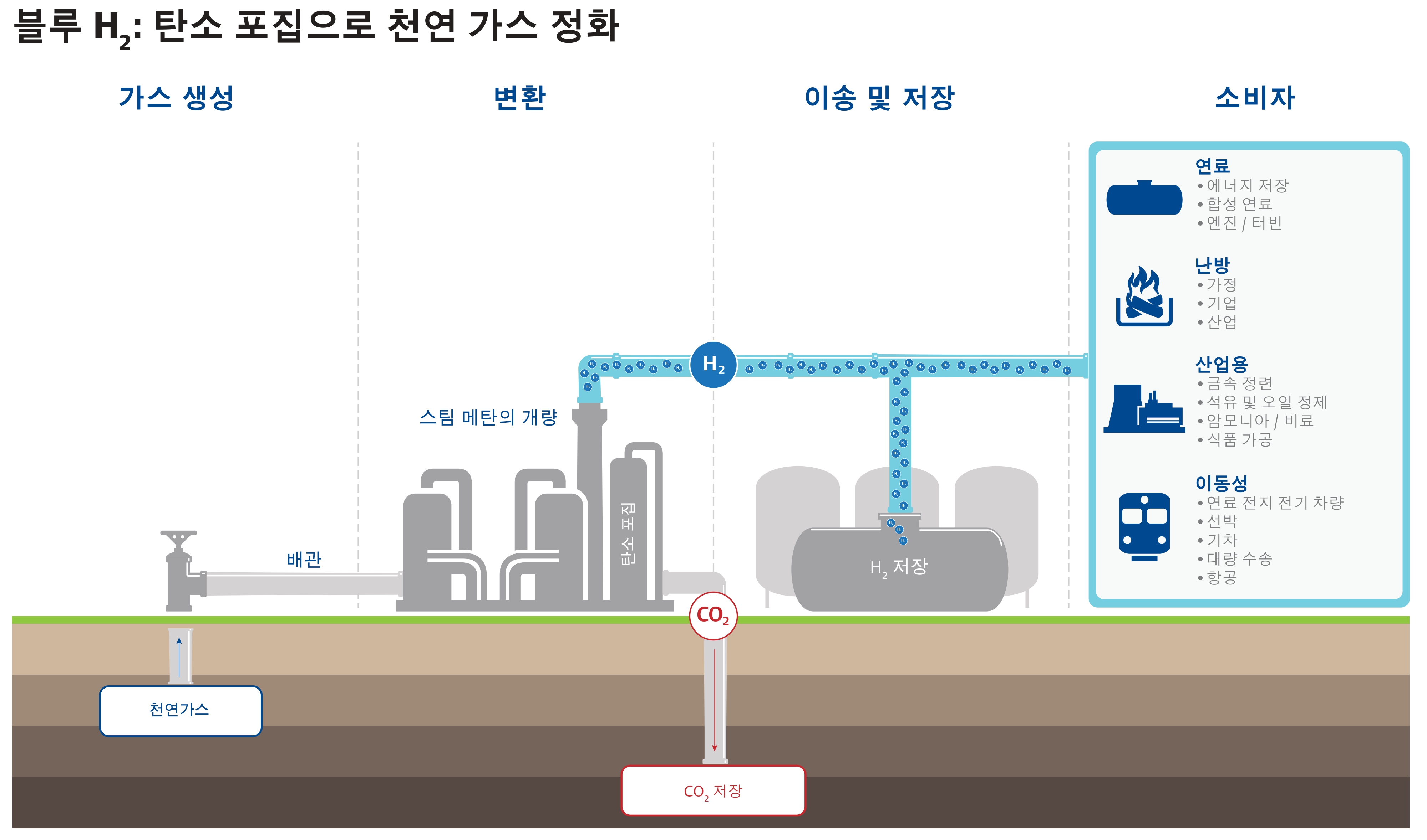 기존 화석연료 기반 산업의 저탄소화: 철강, 시멘트, 화학 등 고열이 필요한 산업에서 천연수소는 고온 열원으로서의 가치를 가진다.