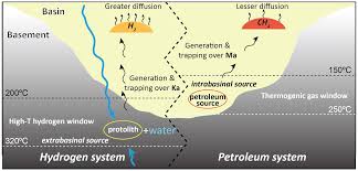 지질학적으로는 초염기성암(ultramafic rock), 단층 및 절리 구조, 심층 수문지질계, 열수변질대 등이 중요한 요소로 작용한다. 수소가 축적되려면 생성뿐 아니라 지하에 가둬둘 수 있는 덮개암(cap rock) 구조가 필요하며, 이는 기존의 석유나 가스와 유사한 탐사 기술을 적용할 수 있음을 의미한다.