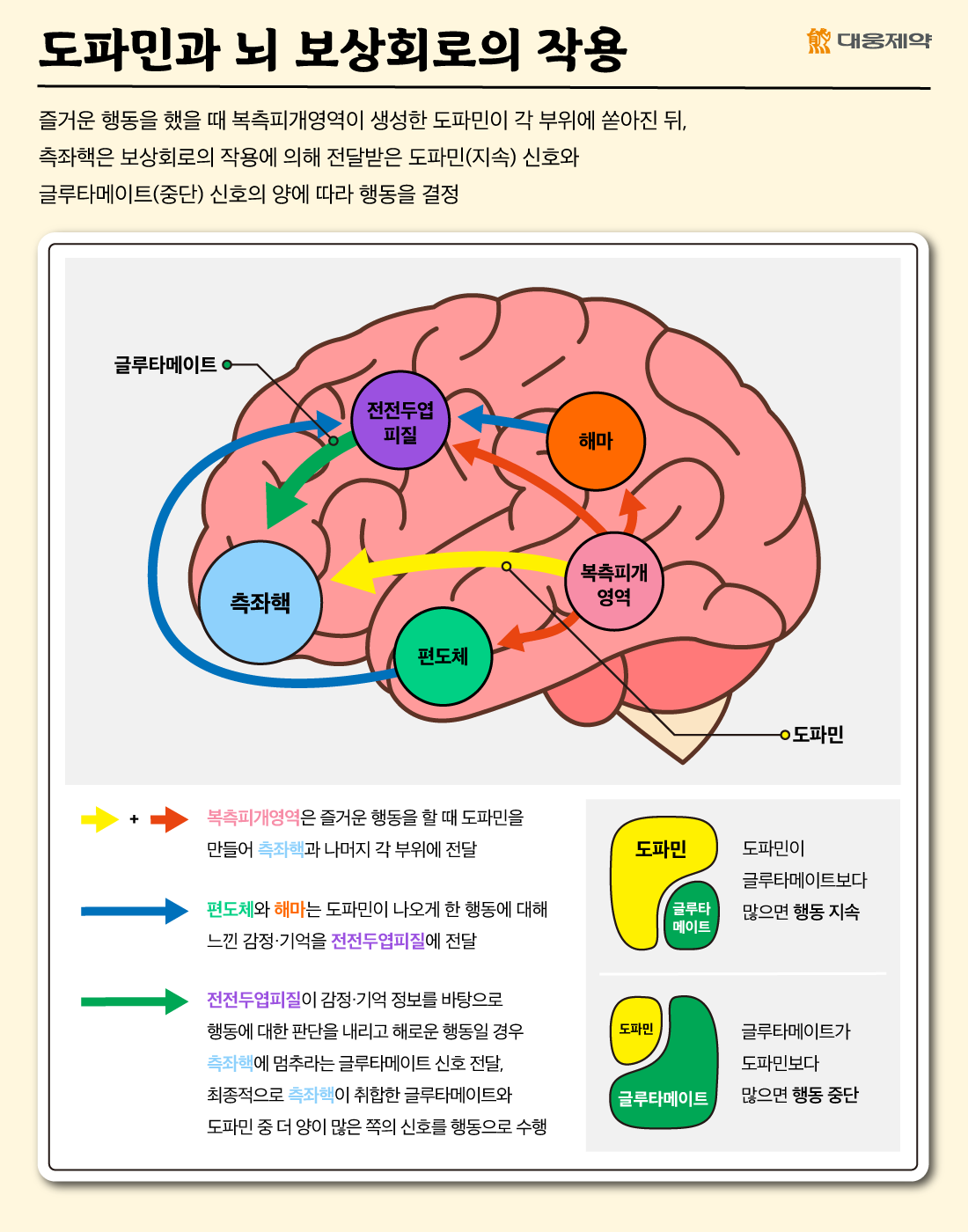 이는 사용자의 뇌에서 보상 시스템을 자극하는 요소로 작용한다.