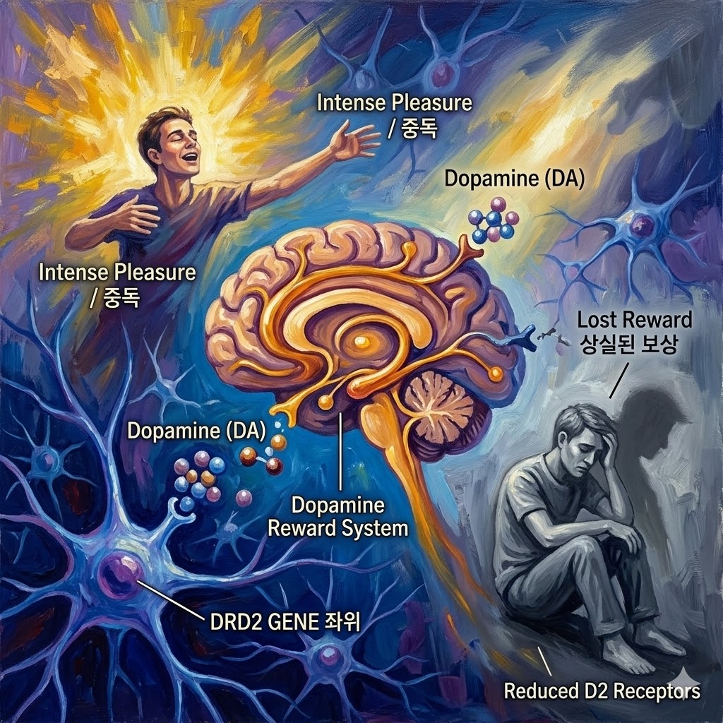 놀랍게도, 알코올 의존 환자들 또한 도파민 D2 수용체 밀도가 감소되어 있으며, 이는 중독 물질에 대한 반응성이 비정상적으로 조절됨을 시사한다. 다시 말해, 도파민 시스템의 기능 이상은 중독성과 정신질환의 공통된 생물학적 병리 메커니즘으로 작용한다.