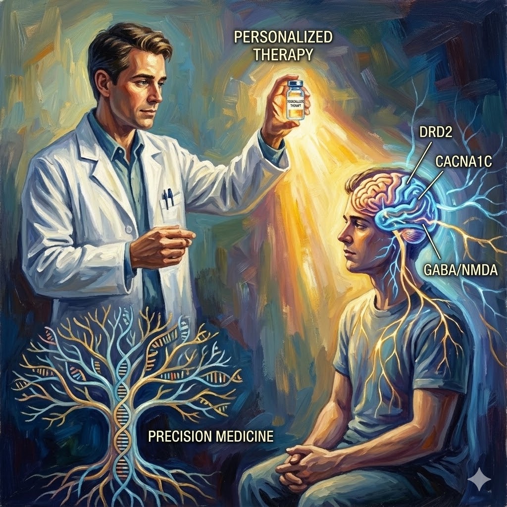 유전자 정보 기반 맞춤의학(precision medicine)은 이러한 연관성을 실용화할 수 있는 미래의 열쇠다. 예를 들어, CACNA1C 변이가 있는 사람은 스트레스 취약성과 알코올 갈망이 동시에 높기 때문에 초기부터 양방향 예방 개입이 가능하다.
