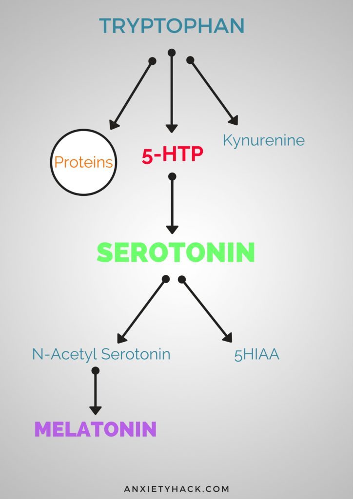 트립토판 → 5-HTP → 세로토닌 → N-아세틸세로토닌 → 멜라토닌