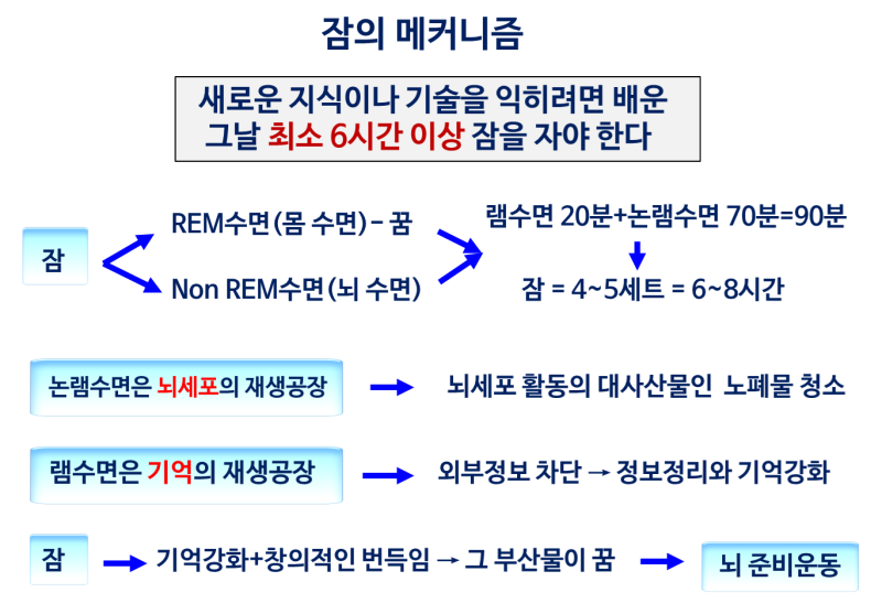 즉, 뇌세포 자체를 보호하고 유지하기 위해서는 ‘학습’보다도 ‘회복’이 필수이며, 이는 충분한 수면 없이는 이루어질 수 없습니다.