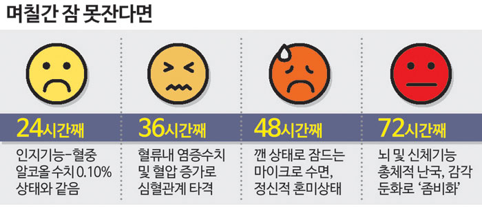 깊은 수면 부족 시 해마(기억 저장소)와 전전두엽(집중력·계획력 조절)의 활동이 약화됩니다.