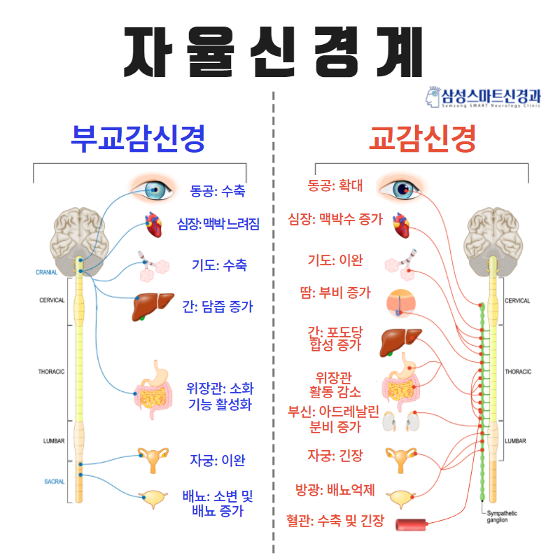 이 두 신경계가 정교한 균형을 이루며 신체를 자동으로 조절하고 있는데, 이 균형이 깨질 경우 다양한 이상 증상이 나타난다. 특히 체위 변화에 따라 혈압과 심박수를 빠르게 조절하지 못하는 현상은 자율신경계 이상을 시사한다.