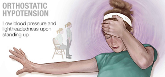 노화: 나이가 들면 교감신경의 반응성이 감소하고 혈관 수축 능력이 약화되어 기립성 저혈압이 흔해진다.