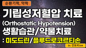 미국 FDA에서는 ‘미도드린(Midodrine)’이라는 약물을 기립성 저혈압의 치료제로 승인하였다. 미도드린은 혈관을 수축시키는 알파-1 아드레날린 수용체 작용제로, 말초혈압을 올려주는 효과가 있어 기립 시 혈압 저하를 예방하는 데 사용된다.